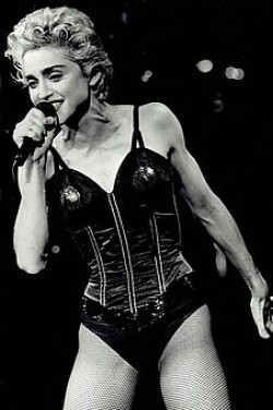 1990–1996Die neue Welttournee Blond Ambition World Tour startete am 13. April 1990 in Tokyo, Japan. Danach kamen zahlreiche Konzerte in den Vereinigten Staaten und Kanada, und im Sommer stand schließlich Europa auf dem Tourplan. Auf der Bühne trug sie Kreationen des Pariser Mode-Designers Jean Paul Gaultier. Kaum eine Performance prägte Madonnas Image mehr als ihre Darbietung von Like a Virgin. Sie trug ein goldenes Korsett mit kegelförmigem BH, dabei simulierte sie eine Masturbation. In Kanada drohte Madonna sogar eine Haftstrafe, und in Italien rief der Vatikan zum Boykott von Madonnas Konzert in Rom auf. Am 5. August 1990 ging Madonnas kontroverse Blond Ambition Tour in Nizza zu Ende. Dieses Konzert wurde exklusiv in den Vereinigten Staaten im Fernsehen von HBO übertragen und erzielte eine hohe Einschaltquote.