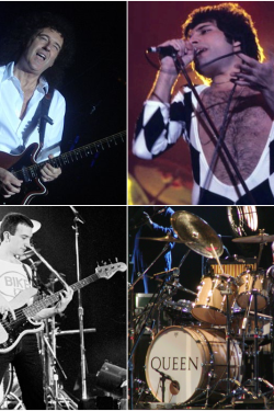 Queen ist eine 1970 gegründete britische Rockband. Ihre Besetzung mit Freddie Mercury, Brian May, Roger Taylor und dem Anfang 1971 dazugekommenen John Deacon blieb mehr als zwei Jahrzehnte lang unverändert. Queens Karriere war kontinuierlich international erfolgreich: Sämtliche nach ihrem Durchbruch im Jahr 1974 veröffentlichten Studioalben erreichten in zumindest einem Land Platz eins der Charts. Mit über 300 Millionen verkauften Tonträgern ist Queen eine der weltweit kommerziell erfolgreichsten Bands. In ihrer Heimat Großbritannien wurde allein ihr erstes Greatest-Hits-Album mehr als fünf Millionen Mal verkauft, was dort bislang unübertroffen ist. Die Band trat mehr als 700-mal live auf.Die Musik der Gruppe ist durch große stilistische Vielfalt gekennzeichnet; alle vier Bandmitglieder waren wesentlich am Songwriting beteiligt. Zu Queens bekanntesten Liedern zählen das von Freddie Mercury komponierte We Are the Champions, Brian Mays We Will Rock You, John Deacons Another One Bites the Dust und Roger Taylors Radio Ga Ga. Die Mercury-Komposition Bohemian Rhapsody belegte sowohl 1975 als auch 1991 viele Wochen lang die Spitze der britischen Singlecharts. Für diesen Titel, der Ballade und operettenhaft überzeichnete Gesangskapriolen sowie Hardrock in einem Song vereint, produzierte die Band eines der frühesten erfolgreichen und stilprägenden Musikvideos.